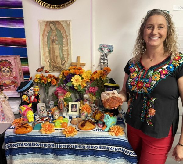 “In my classroom, I usually make an altar (ofrenda) and I put fake bread on there and [things like] flowers and water and candles and masks. Usually, it represents the four different elements, like earth, air, wind and water. I also put my grandma’s picture on [the altar],” Villmer said.