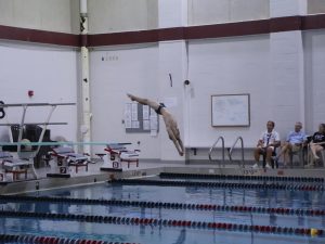 Sophomore Seth Bender dives into the water. The meet took place on Oct. 15 against Parkway North, with North winning 110-70. The swim team has had a lot of achievements this season, including a new 100 Breaststroke school record set by junior Gavin Waser, who achieved a time of 00:57.43.